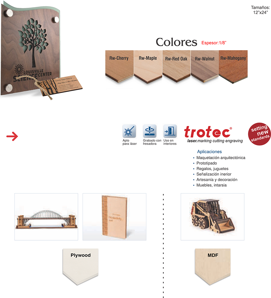 El Hardwood Collection es madera dedicada para Máquinas Laser. Esta diseñada con 5 capas de madera laminadas que garantiza estabilidad dimensional y dureza en toda la madera sin preocuparnos por nudos.